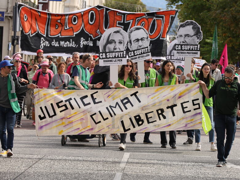 En France, ces marches s’inscrivent très clairement dans la continuité des mouvements sociaux auxquels Greenpeace France a participé les 10 et 18 septembre derniers. Des reculs sociaux et environnementaux majeurs, des milliers de postes détruits dans les services publics, des budgets pour la santé et l’environnement réduits à peau de chagrin… Le projet de budget présenté par François Bayrou, qui prévoit des coupes d’un montant de 44 milliards d’euros, a effectivement de quoi susciter la colère. Et la nomination de Sébastien Lecornu pour lui succéder ne vient que conforter l’impasse actuelle et l’incapacité à répondre aux urgences sociales et environnementales, tout en attisant un peu plus la colère légitime des citoyens et citoyennes.