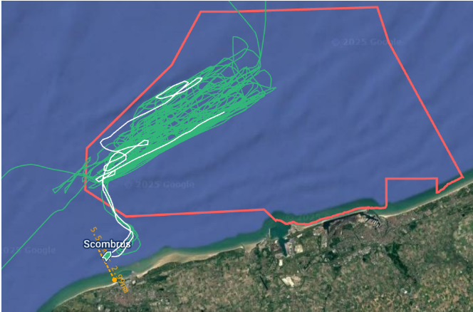 Les 22, 23 et 26 novembre 2025, le Scombrus, super chalutier gargantuesque de 81 mètres de long pouvant pêcher jusqu’à 200 tonnes par jour, a même été repéré en « effort apparent de pêche » en pleine bande des trois milles marins (soit 5,5 kilomètres), censée être réservée à la pêche artisanale. Bien que l’interdiction dans cette bande comporte de (trop) nombreuses exceptions, le Scombrus a vraisemblablement pêché dans une zone qui lui est strictement interdite.
