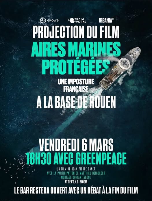 Vendredi prochain, le 6 mars à la Base à Rouen à 18h30 le Groupe Local organise la diffusion du film documentaire de l’association Bloom: Aires Marines Protégées, une imposture française. Nous tiendrons le bar à cette occasion et la projection sera suivie d’un débat. Nous espérons vous y voir nombreux!
